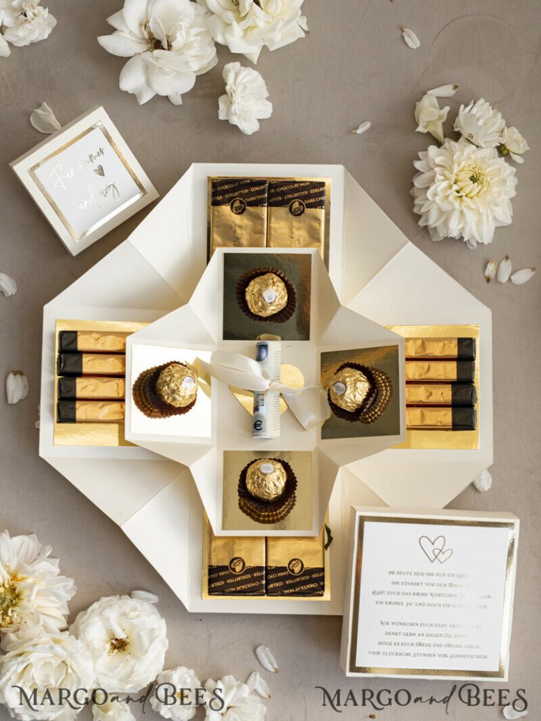 Mini Geldgeschenk zur Hochzeit – Kleines Box mit großer Wirkung Kleines Geldgeschenk zur Hochzeit Exploding Box mit Pralinen